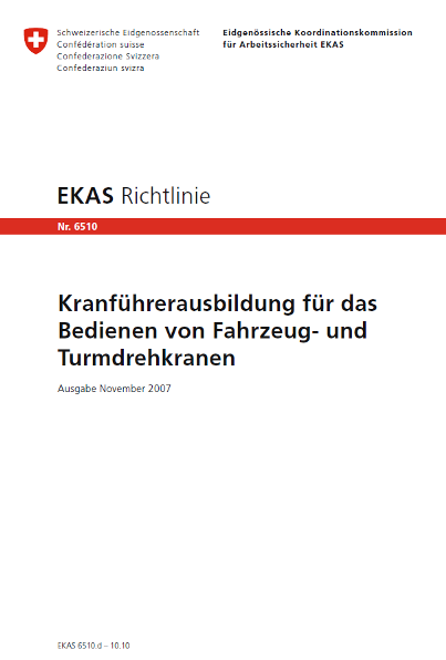 Um die Anerkennung von der SUVA zu erhalten bedarf es einer, der EKAS-Richtlinie 6510 entsprechenden Kranausbildung und einer speziellen Qualifikation von Ausbildern und Prüfungsexperten. Als einer der wenigen Aus- und Fortbildungsbetriebe aus Deutschland gehören wir mit dazu.